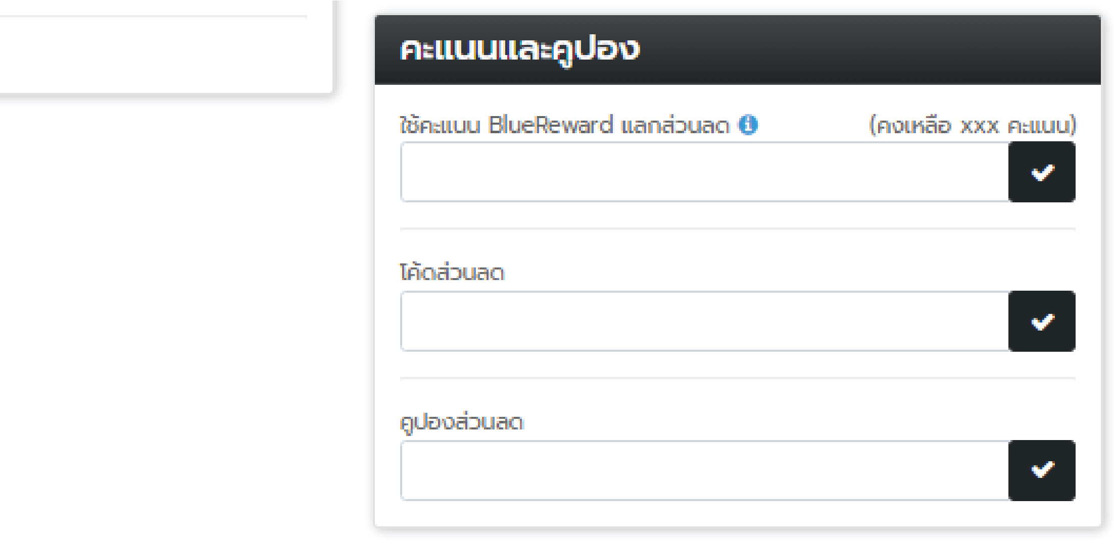 8. เลือกใช้คะแนน คูปอง หรือ โค้ดที่ได้รับ (ตามภาพด้านล่าง)