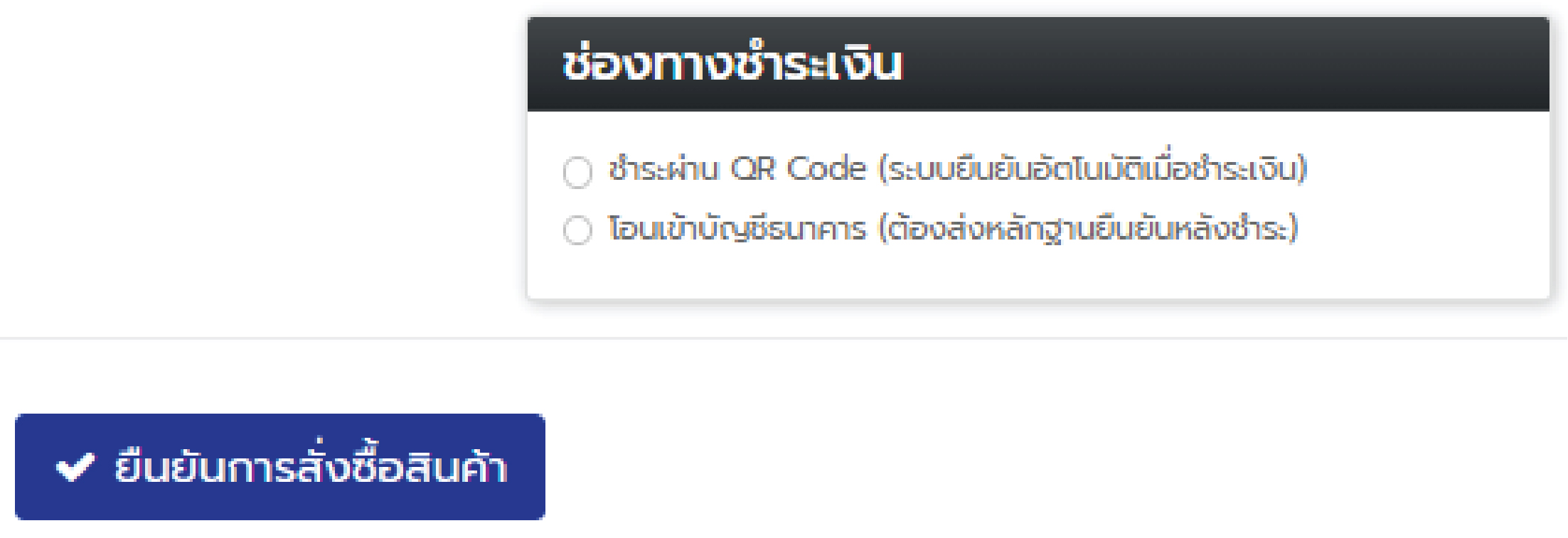 9. เลือกวิธีการชำระเงิน จากนั้นยืนยันการสั่งซื้อ (ตามภาพด้านล่าง)