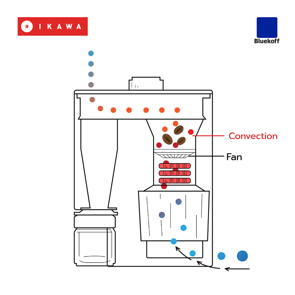 การพาความร้อนเป็นหลักสำคัญของกระบวนการคั่วเป็นอย่างมากและเป็นวิธีที่นิยมใช้กันมากที่สุดเพราะสามารถวัดผลและควบคุมได้ง่ายที่สุดนั่นเอง การพาความร้อนในแบบการบังคับ โดยจะมีพัดลมที่เป็นตัวควบคุมทิศทางให้อากาศที่มีความร้อนส่งไปยังเมล็ดกาแฟโดยผู้คั่วสามารถปรับ Airflow (ความเร็วลม) ได้ ซึ่งจะส่งผลต่อการคั่วกาแฟเกือบจะทันทีผู้คั่วสามารถเรียนรู้การพาความร้อนได้จากการอ่านค่าต่างๆ ขณะที่คั่วอยู่ได้ และในเครื่องคั่ว IKAWA นั้นก็ได้ออกแบบให้ผู้คั่วสามารถดูค่าต่างๆ ขณะคั่วได้ อีกทั้งค่าต่างๆ เหล่านี้จะถูกบันทึกไว้ในแอพพลิเคชั่นเพื่อให้ผู้คั่วได้นำไปออกแบบโปรไฟล์การคั่วเพื่อให้เกิดผลลัพธ์ที่ต้องการได้อย่างง่ายดายอีกด้วย