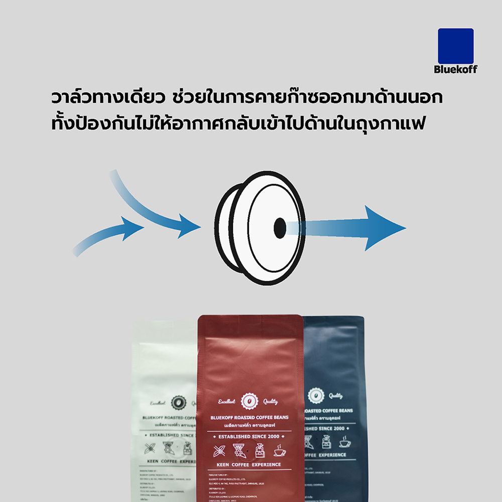 นอกจากเราจะมีถุงกาแฟที่มีคุณภาพแล้ว อีกหนึ่งสิ่งที่เรียกว่าสำคัญมากๆ บนถุงกาแฟนั้นคือ One Way Value แล้วรู้หรือไม่ว่า มันถูกติดตั้งอยู่บริเวณใดของถุงกาแฟกันแน่ หากเราสังเกตดู เมื่อเราจะเลือกซื้อเมล็ดกาแฟ เรามักจะดมที่ซอง และจะเห็นว่ามีพลาสติกแข็งๆ ที่มีรูเล็กๆ อยู่ตรงกลาง และเมื่อบีบถุง เราจะได้กลิ่นของกาแฟลอยออกมา ซึ่งหน้าที่หลักของ One Way Valve นั้น ไม่ได้มีไว้ให้เราดมกลิ่นเท่านั้น แต่มีไว้เพื่อให้อากาศด้านในถุงระบายออกสู่ด้านนอก และป้องกันไม่ให้อากาศด้านนอกเข้าสู่ด้านในถุงนั่นเอง ซึ่งตามชื่อเลยก็คือวาล์วทางเดียว ตัววาล์วมีลักษณะเป็นพลาสติกขนาดประมาณเหรียญบาท มี 3 ชั้น ประกบกันโดยชั้นกลางจะมีกระดาษกรอง หน้าที่สำคัญของวาล์วคือ ช่วยคายก๊าซออกมาหลังจากที่กาแฟถูกคั่วแล้ว เพราะหากถุงกาแฟไม่ได้คายก๊าซ จะทำให้ถุงนั้นบวมใหญ่ขึ้น และส่งผลต่อคุณภาพของเมล็ดกาแฟโดยตรง ซึ่งก๊าซที่อยู่ในถุงจะทำให้กลิ่นและรสชาติของกาแฟที่ดีลดน้อยลง
