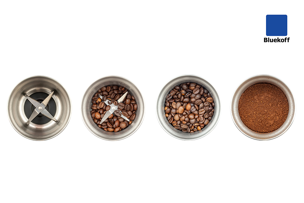 นับเป็นเครื่องบดที่ราคาไม่แพง โดยใบมีดที่เป็นโลหะติดกับมอร์เตอร์ที่จะหมุนและตีเมล็ดกาแฟให้ละเอียด ข้อควรระวังสำหรับเครื่องบดแบบใบมีด คือรูปทรงและขนาดของผงกาแฟที่ได้จะไม่สม่ำเสมอ มีทั้งผงที่ละเอียดและหยาบปะปนกัน ทำให้รสชาติของกาแฟไม่สม่ำเสมอ ควบคุมรสชาติของกาแฟได้ยาก