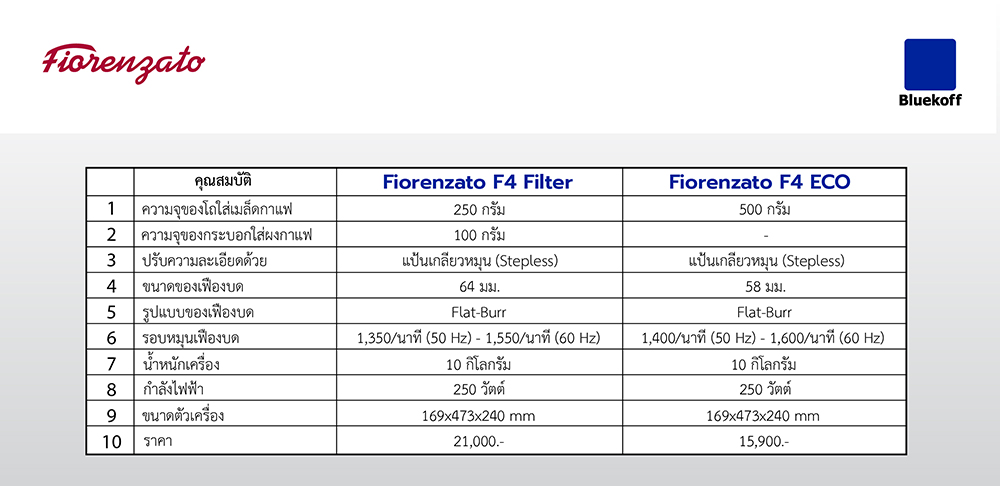 สำหรับเครื่องบดจากแบรนด์ Fiorenzato เองก็มีเครื่องบดที่หลากหลาย ตอบโจทย์ทั้งร้านกาแฟขนาดใหญ่ ขนาดกลาง ขนาดเล็ก รวมทั้งเครื่องบดขนาดกะทัดรัดใช้งานในบ้านด้วยเช่นเดียวกัน วันนี้เราจะขอแนะนำเครื่องบดขนาดเล็กที่เหมาะสำหรับใช้งานในบ้านให้ทุกคนได้รู้จักกันค่ะ นั่นคือ F4 Filter และ F4 ECO เรามาดูกันว่าทั้ง 2 รุ่นนั้นแตกต่างกันอย่างไรบ้าง