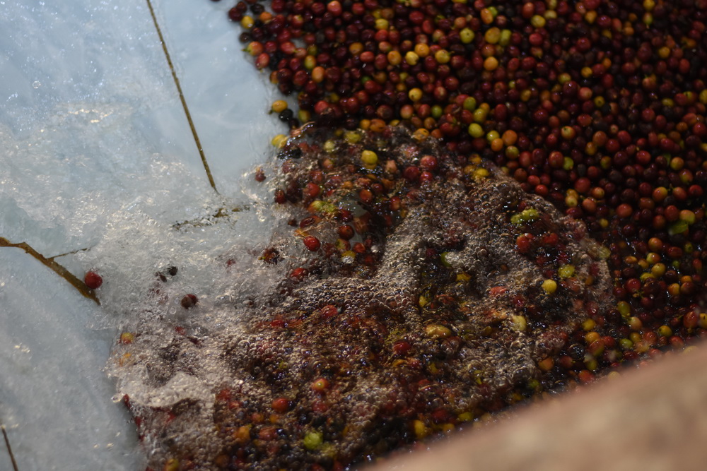 - ล้างน้ำ เพื่อให้เมือกที่เหลือ และยางของผลกาแฟ ถูกชะล้างออกไป