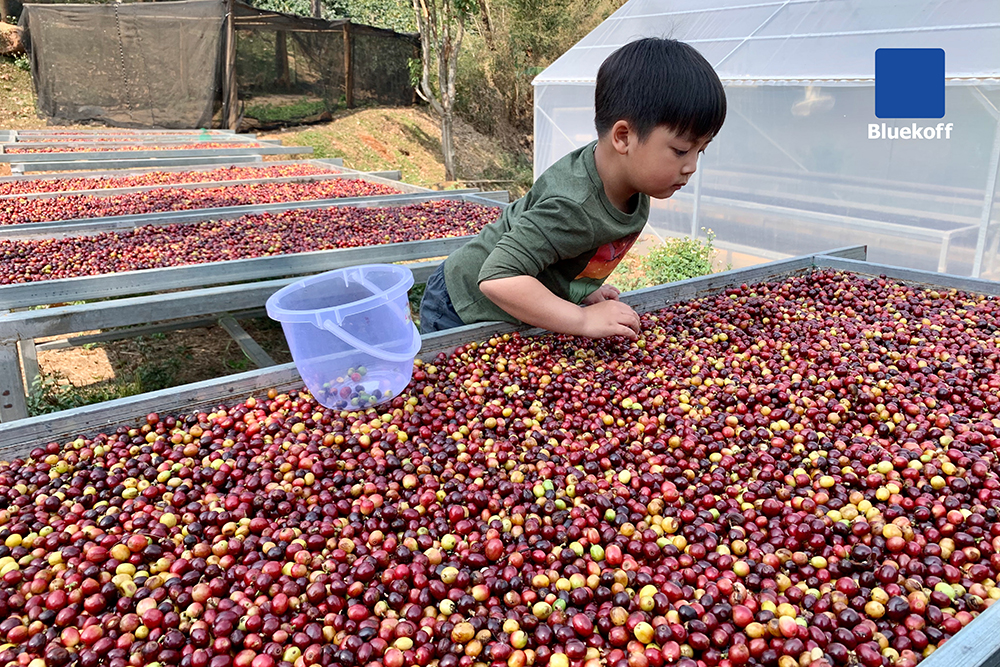สำหรับบลูคอฟเองก็ผลิตกาแฟจากโปรเซสนี้เช่นกัน มาดูกันว่า Dry process ในรูปแบบของบลูคอฟนั้นจะมีขั้นตอนการผลิตอย่างไรบ้างค่ะ