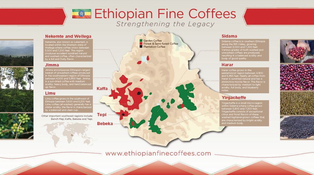 ชื่อของพื้นที่ปลูกกาแฟในเอธิโอเปีย เป็นชื่อที่เป็นที่รู้จักกันเป็นอย่างดีและเป็นชื่อที่ใช้ขายกาแฟในปัจจุบัน และอาจจะใช้ต่อไปอีกอย่างยาวนานในอนาคต ซึ่งศักยภาพของสายพันธุ์อาราบิก้าท้องถิ่น และอาราบีก้าป่านั้น ทำให้อนาคตของกาแฟเอธิโอเปียดูน่าตื่นใจมาก