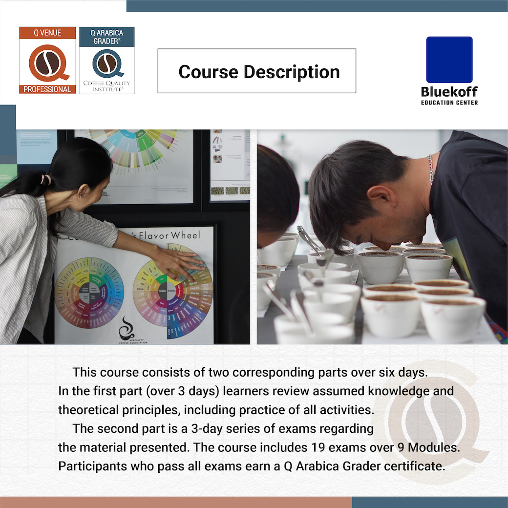However, the Q Grader course & exam is not a course for inexperienced or new cuppers; it is an advanced level course. It is highly recommended that you practice your skills by signing up for SCA Skill Building Workshops or Basic Skill Coffee Courses which are offered throughout the year by Bluekoff Education Center.