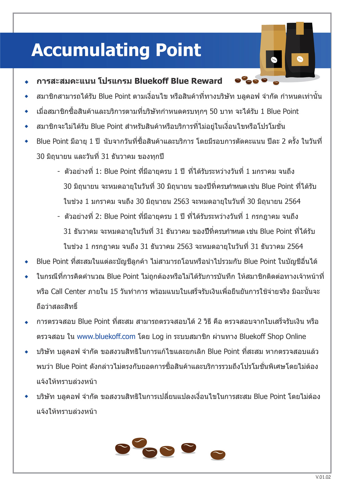 - เมื่อซื้อสินค้า Bluekoff ที่ร่วมรายการครบทุก 50 บาท รับคะแนน 1 Blue Point