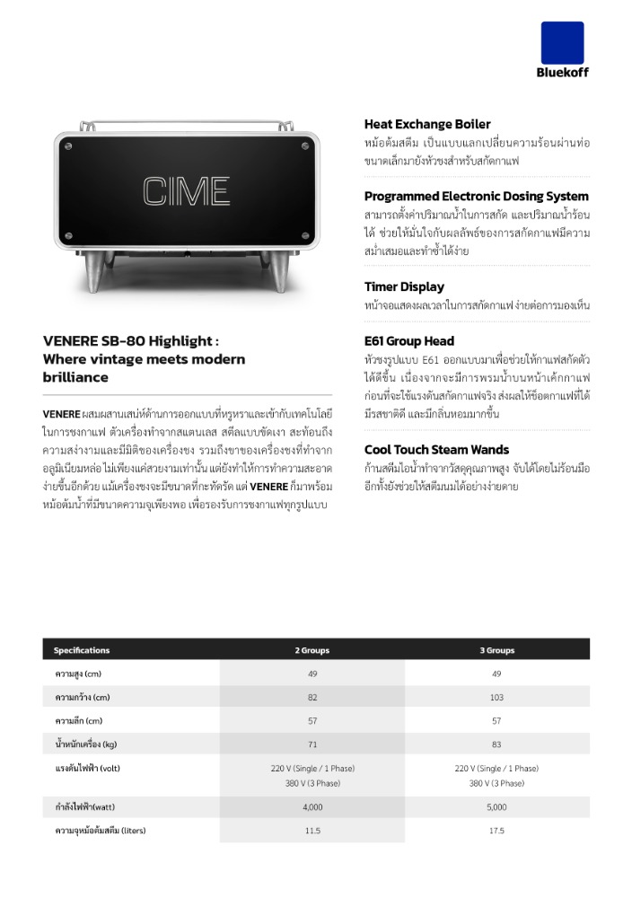 VENERE ผสมผสานเสน่ห์ด้านการออกแบบที่หรูหราและเข้ากับเทคโนโลยีในการชงกาแฟ ตัวเครื่องทำจากสแตนเลส สตีลแบบขัดเงา สะท้อนถึงความสง่างามและมีมิติของเครื่องชง รวมถึงขาของเครื่องชงที่ทำจากอลูมิเนียมหล่อ ไม่เพียงแค่สวยงามเท่านั้น แต่ยังทำให้การทำความสะอาดง่ายขึ้นอีกด้วย แม้เครื่องชงจะมีขนาดที่กะทัดรัด แต่ Venere ก็มาพร้อมหม้อต้มน้ำที่มีขนาดความจุเพียงพอ เพื่อรองรับการชงกาแฟทุกรูปแบบ