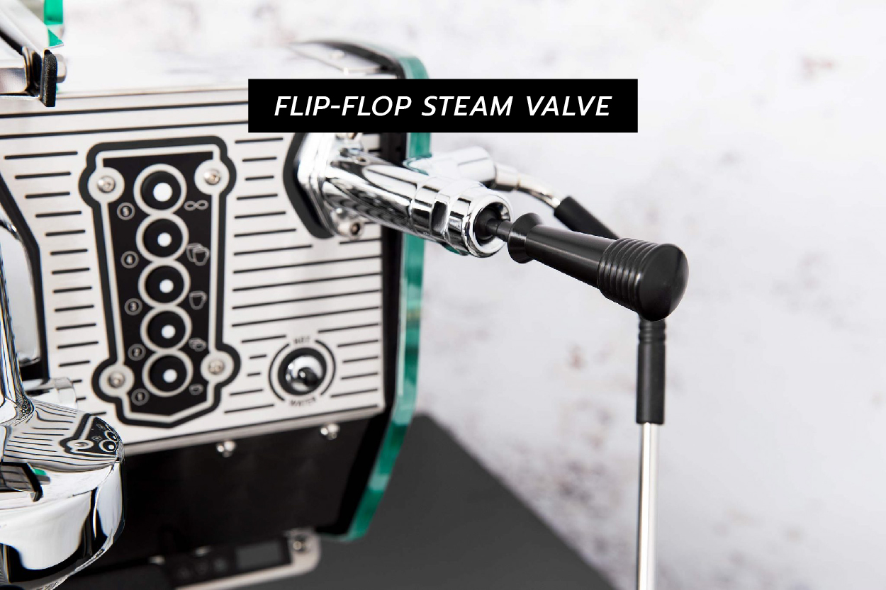 • Progressive pre-infusion cylinder ต่อหัวกรุ๊ป ช่วยให้สามารถสกัดกาแฟที่บดละเอียดมากขึ้นและลดการ Chanelling
