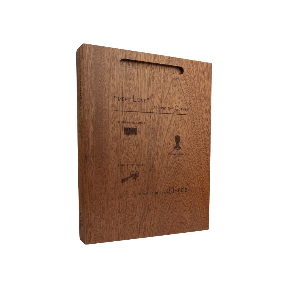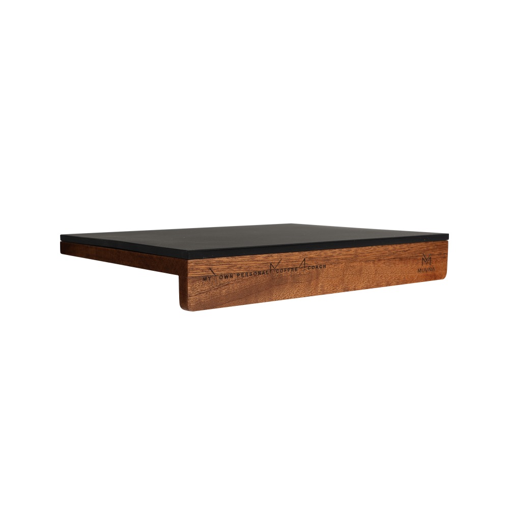 Muvna Wood Base Corner Tamping Mat อุปกรณ์รองสำหรับแทมป์กาแฟ ตัววัสดุทำจากไม้เนื้อแข็ง มาพร้อมกับแผ่นยางซิลิโคลรองแทมป์ ดีไซน์เข้ามุมขอบเคาเตอร์ ทำให้ประหยัดพื้นที่