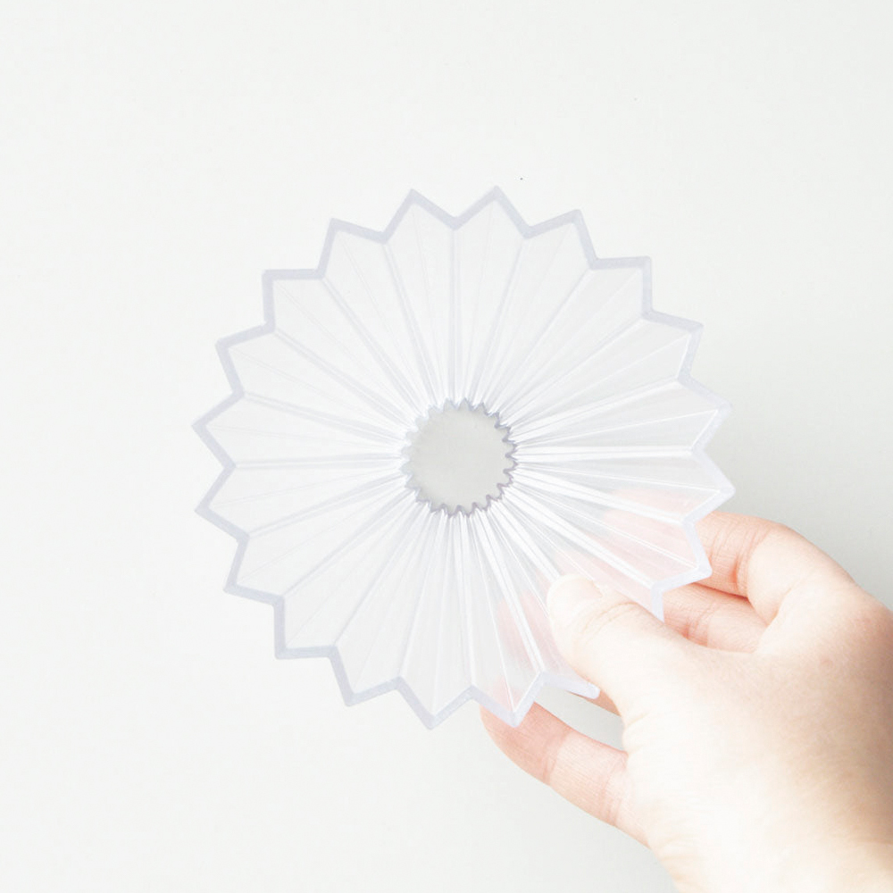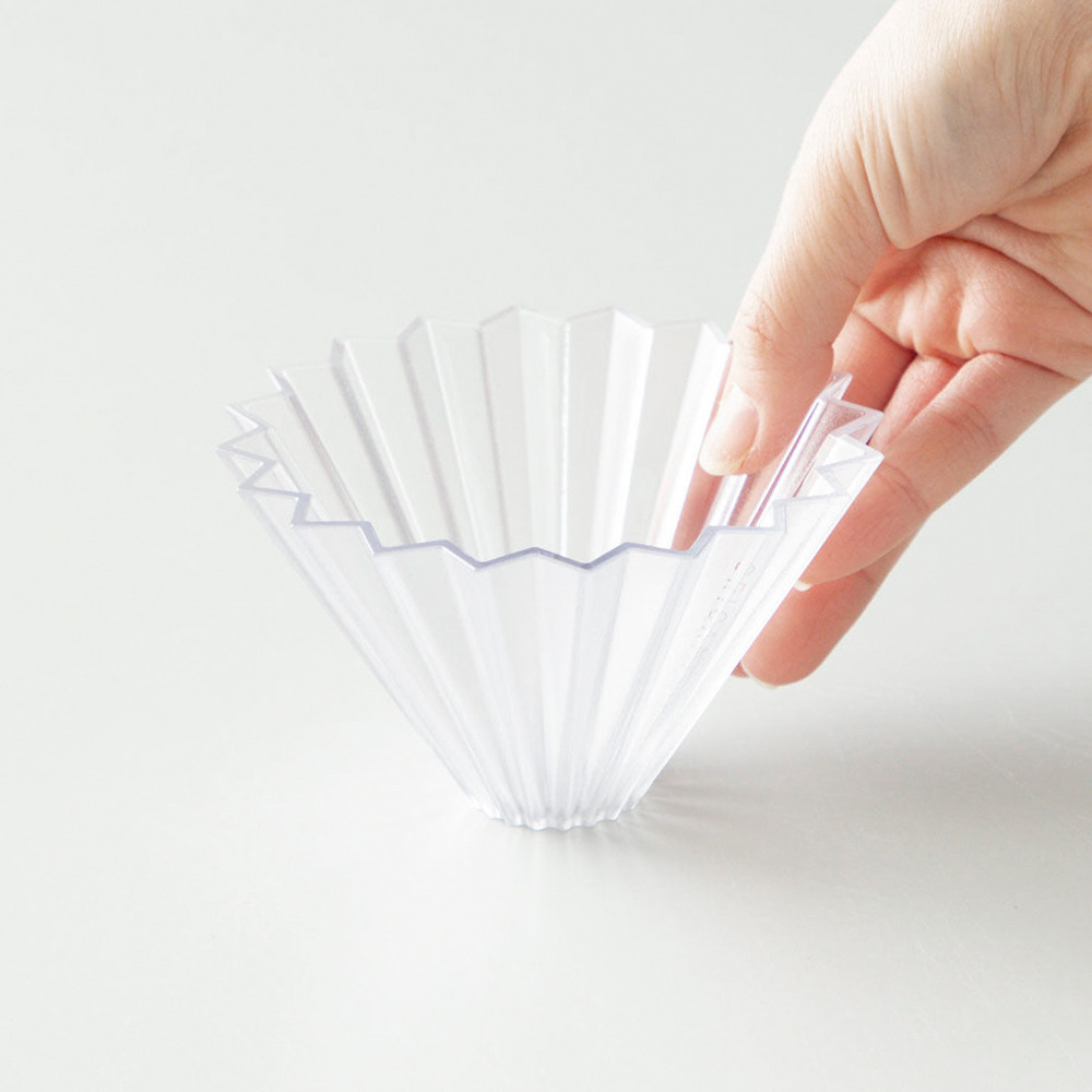 การออกแบบดริปเปอร์เป็นรูปทรงกรวย ประกอบด้วยทางน้ำไหลคล้ายการพับกระดาษกว่า 20 ช่อง แต่ละช่องถูกคำนวณระยะห่างโดยผู้เชี่ยวชาญ ทำให้การไหลของกาแฟที่ถูกสกัดโดย Origami Dripper นั้น ไม่ไหลเร็วหรือช้าเกินไป ช่วยให้สามารถควบคุมการไหลของกาแฟได้ง่ายขึ้น