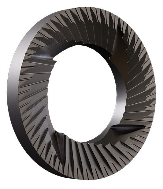เฟืองบดแบบแบน ออกแบบมาเพื่อการสกัดที่สมบูรณ์ ทำจากเหล็กกล้า M340 มีความทนทานกว่าเฟืองทั่วไป 5 เท่า ที่ได้รับการรับรองสำหรับการใช้ในอุตสาหกรรมอาหาร ที่ออกแบบและผลิตโดย Fiorenzato เอง