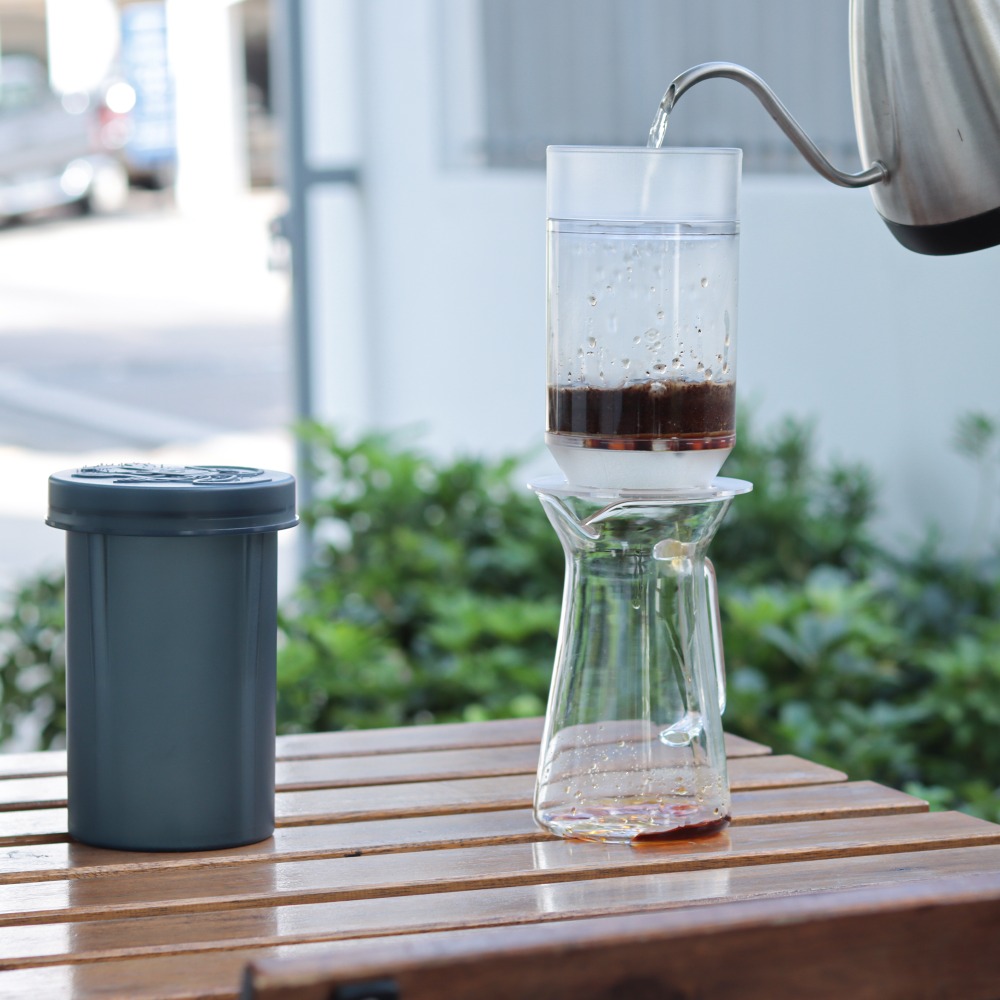 3. รินน้ำร้อนเพิ่มเติมจนครบ 500 มล. ยกอุปกรณ์ขึ้นมาหมุนวนอีกครั้ง แล้วตั้งทิ้งไว้ประมาณ 5-6 นาที จนน้ำไหลหมดแล้วยกอุปกรณ์ออก เป็นอันเสร็จสมบูรณ์