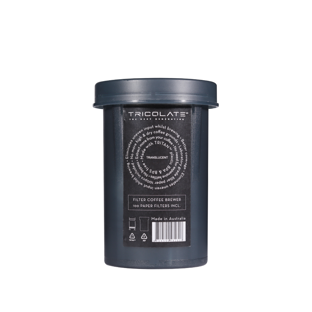 Tricolate เป็นอุปกรณ์ชงกาแฟแบบ Filter จากประเทศออสเตรเลีย มีจุดเด่นเรื่องการสกัดแบบแช่และไหลผ่าน ใช้งานง่ายและสะดวก ให้ผลลัพธ์ของการชงที่สม่ำเสมอ โดยรวบรวมจุดเด่นของอุปกรณ์ชงกาแฟ Filter หลากหลายแบบที่ได้รับความนิยมในปัจจุบัน มาไว้ใน Tricolate ครบ จบ ในอันเดียว